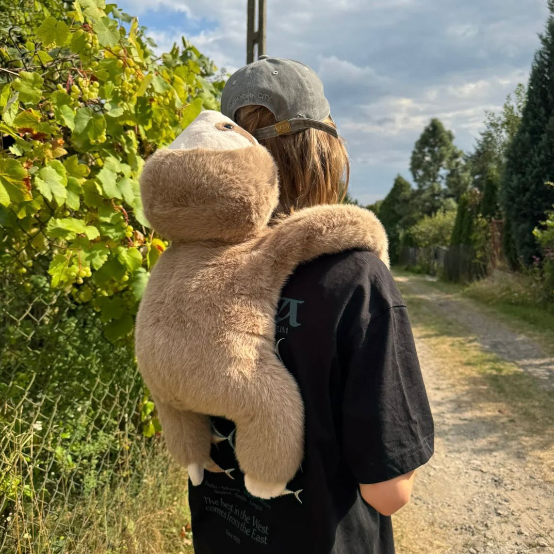 Miś waży ok. 1–1,1 kg (duży) lub 400–450 g (mały) – tyle, by przytulenie wydawało się przyjemnie otulające, ale nie zbyt ciężkie.Obciążenie ukryte w ramionach Otulaki sprawia, że może naprawdę „objąć” cię, gdy pracujesz lub odpoczywasz.To idealny towarzysz do przytulania podczas relaksu, pracy czy snu.